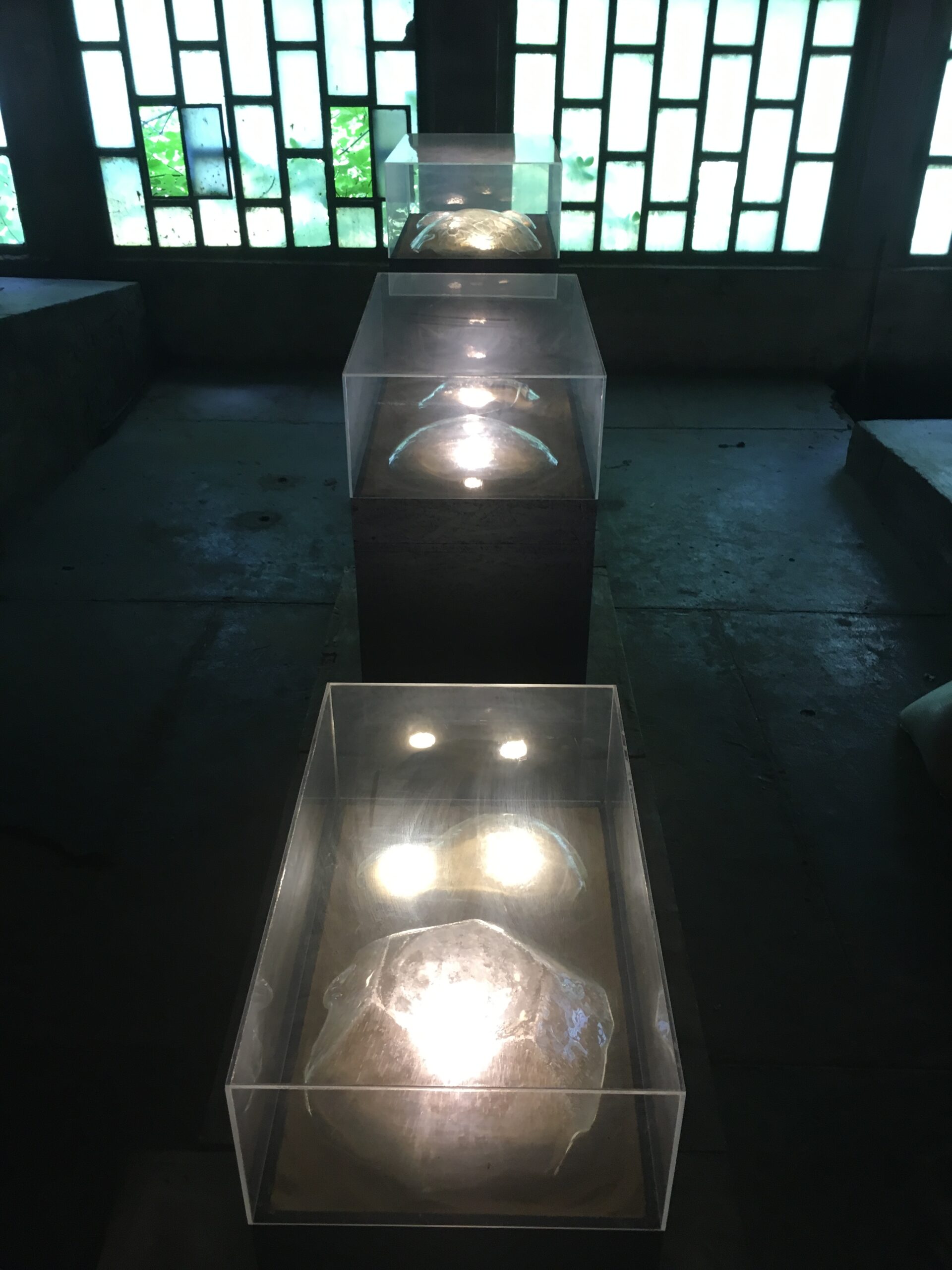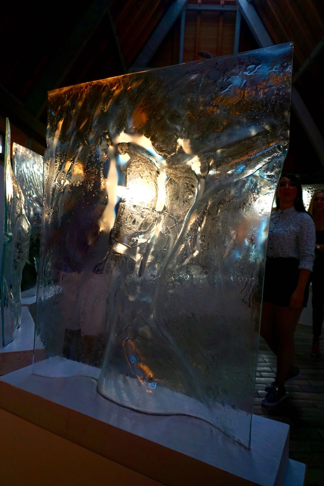 The central idea of the exhibition is the notion of fragility. It explores the fragility of peace and its metaphor, its materialization in equally fragile glass, and the delicate balance needed for peace to exist and spread, like ripples on water.