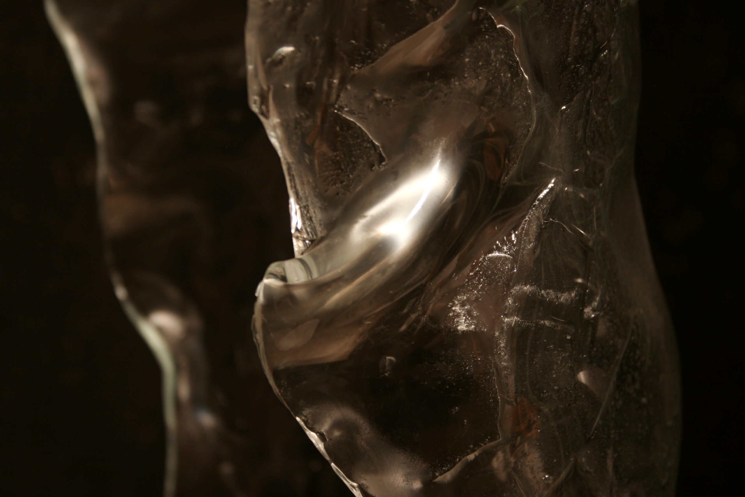 The most interesting thing about working with glass is that the transparency of the material gives me the simultaneity of looking at the sculptures and interiors of the sculptured glass.